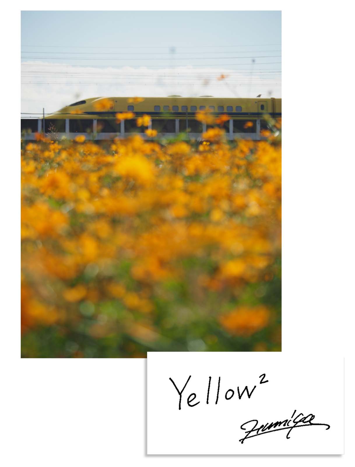 Happy Happy Yellow。秋の花といえばコスモス。兵庫県・武庫川髭の渡しコスモス園は、キバナコスモスもたくさん咲いています。引退間際のドクターイエローとのコラボで幸せ倍増です!